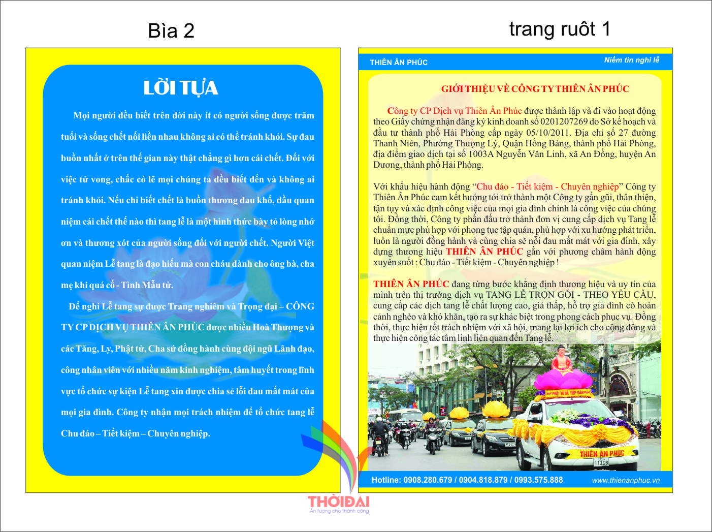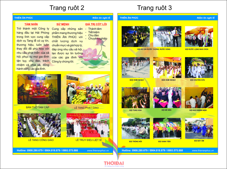 Profile đã được in ấn và tung ra thị trường, để bà con nhìn nhận, đánh giá và sử dụng sản phẩm dịch vụ LỄ TANG của Công ty THIÊN ÂN PHÚC